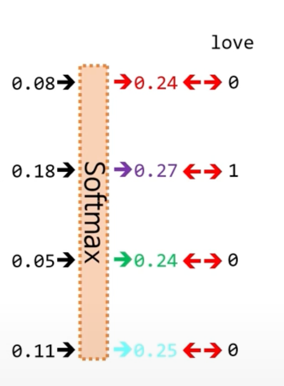 Cross-Entropy를 통해서 계산하는 것이 아니라, 실제 모델의 예측과 실제 타깃 단어간의 차이를 최소하는 함수이지, 단어간의 유사값을 계산하지 않는다.