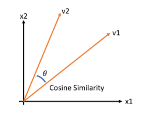 - 두 벡터간의 유사성을 측정하는 방법, 두 벡터가 이루는 각도의 코사인을 계산해서 유사성을 평가