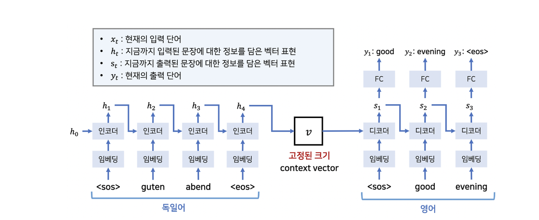 - \(s_t\) : 디코더의 이전 히든 상태
