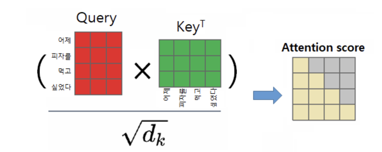 수식 : \(\frac{Q \cdot K^T}{\sqrt{d_k}}\)