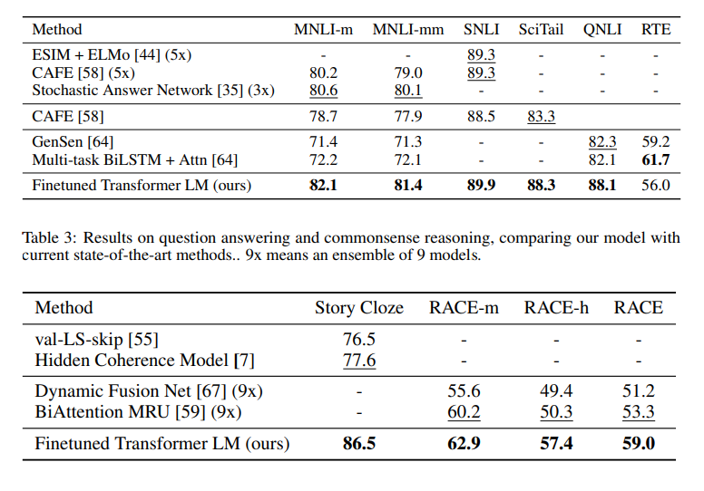 - GPT를 사용한 접근법이 기존 각 태스크에 특화된 지도학습 모델보다 더 높은 성능을 보임.