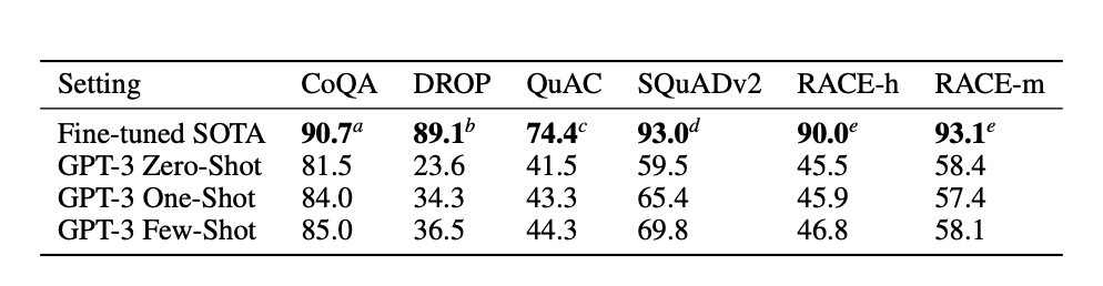 - GPT-3가 고전적인 독해 문제에서는 다소 성능이 낮음