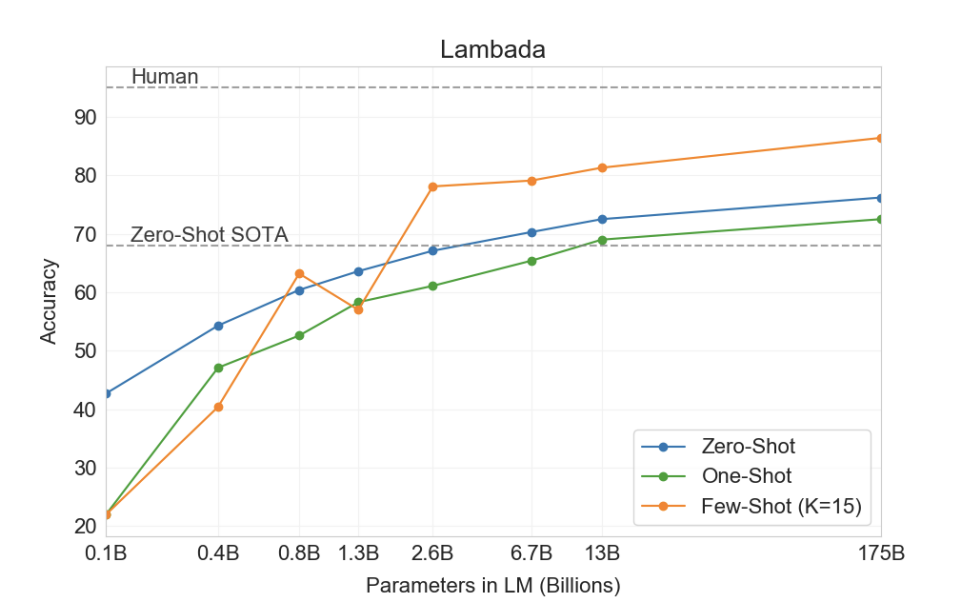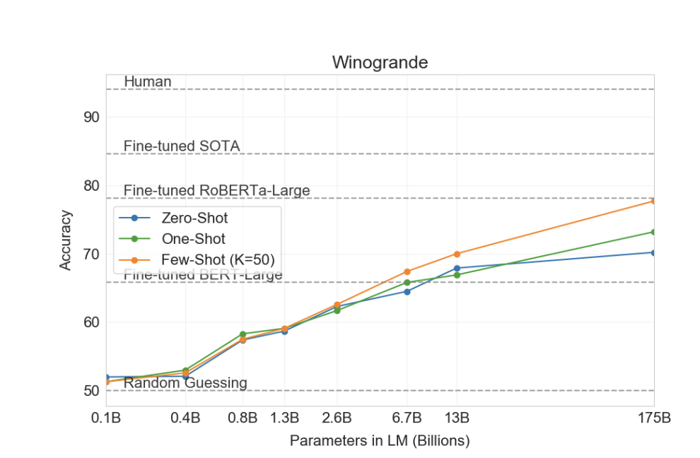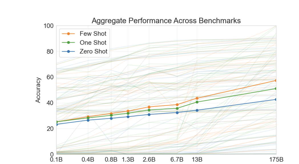위 논문에서는 언어 모델의 크기를 거대하게 키운다면, few-shot, zero-shot 등이 눈에 띄게 좋아진다는걸 보여준다는 것을 보여준다고 함.