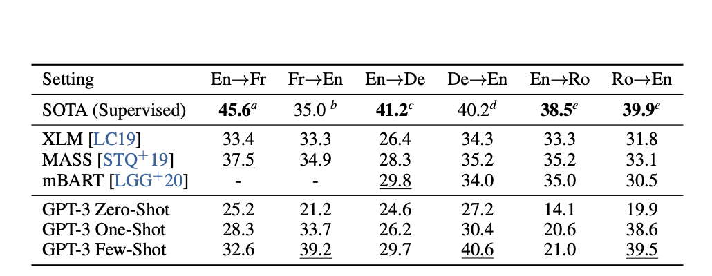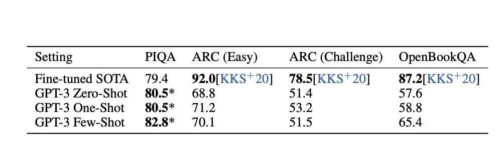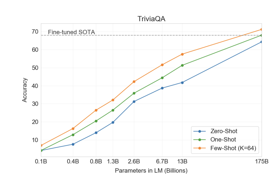 - GPT-3 175B 모델, few-shot 기준에서 일부 과제에서는 fine-tuned 모델에 근접 또는 능가