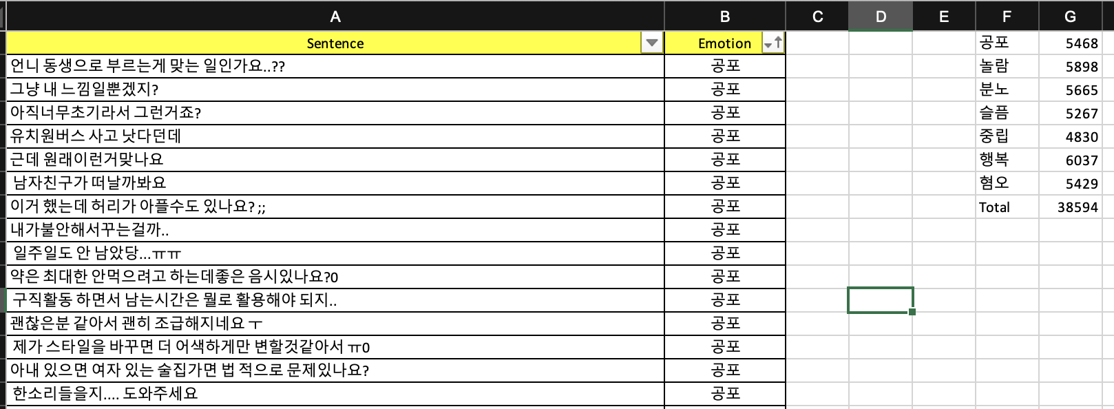 학습하기에 뭔가 적절한 표현이 맞지 않는 문장들이 많아, 다른 데이터셋을 수집하여 학습하기로 하였고 그 결과 한 블로그를 통해 데이터셋을 얻게 되었다