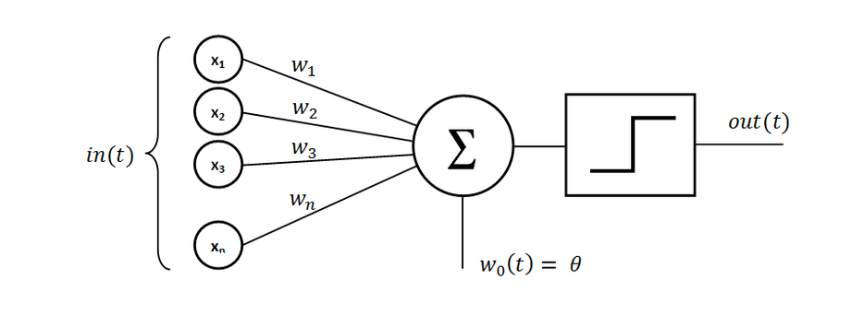 단층 퍼셉트론인공신경망의 가장 기초적인 형태 로젠트 블랑크 아저씨의 의해서 처음 제기됨은닉층 없이 입력층과 출력층만 존재하는 가장 간단한 구조의 단층 신경망 계산식 \(y = f\left(\sum_{i=1}^{n} w_i x_i + b \right)\) 단순하게 입력 값과 가중치를 곱한 값에 편향 값을 구한 값을 최종 출력단계에서 임계치에 도달하면 1 도달하지 못하면 0을 내뱉는(정수) 간단한 신호시스템과도 같은 구조이다. XOR게이트단층 퍼셉트론은 선형분류만을 가능하게끔 구성되어 있는데, 직선 하나로 데이터가 분류될 수 있는 문제만을 해결할 수 있다.왜 그런지에 대해서 정리하려고 한다. 상기 그림에 보여지는대로 XOR 게이트는 한 개의 선으로는 설명할 수 없는 상황이 벌어지게 되는데, 그걸 해결하..